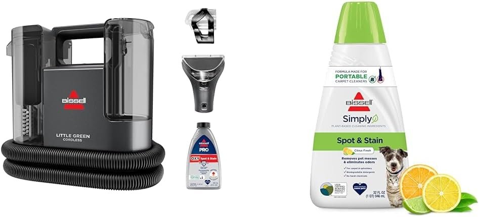 Bundle of BISSELL® Little Green® Cordless Portable Deep Carpet and Upholstery Cleaner + BISSELL Simply Spot & Stain Portable Carpet Cleaner Formula, 32 oz, 3368