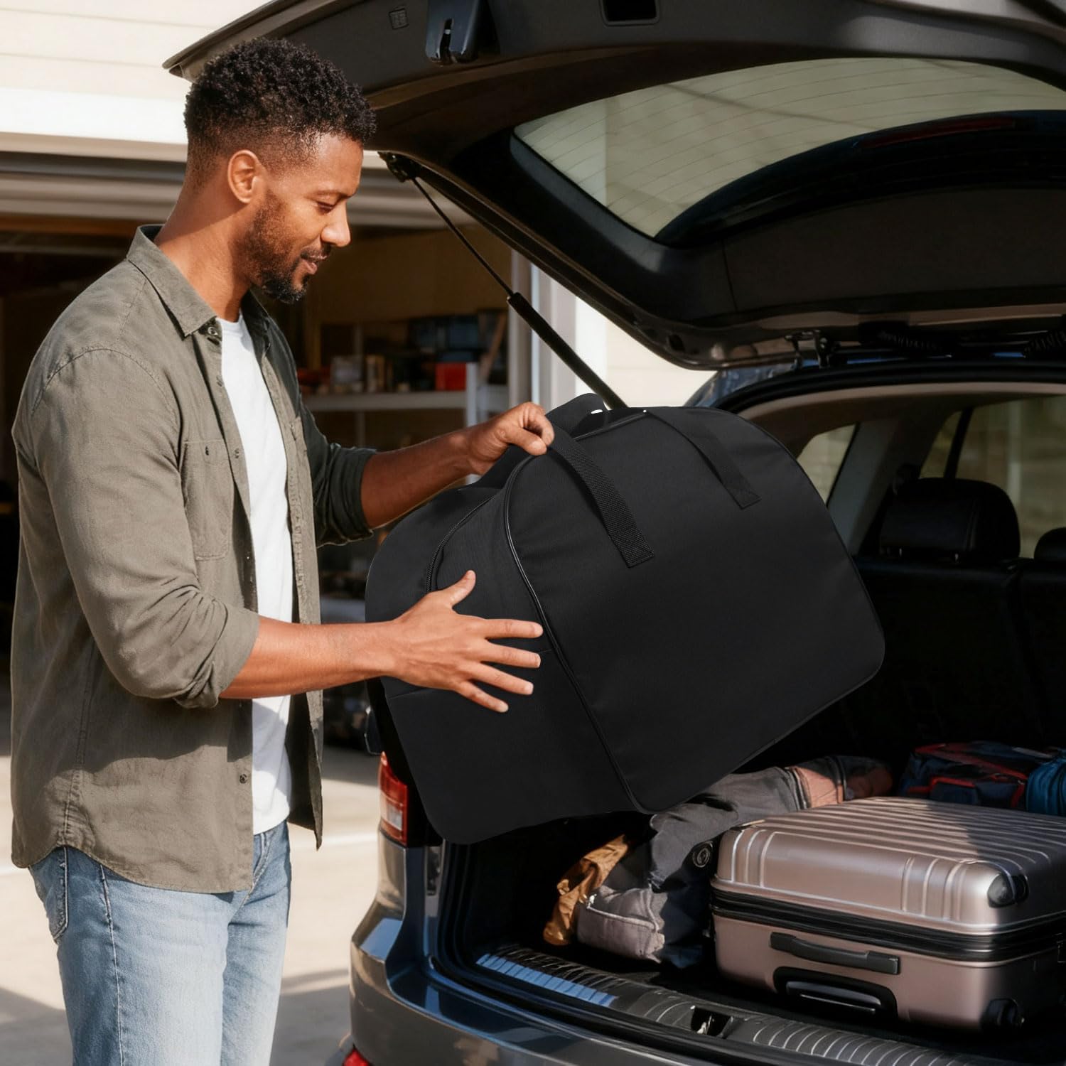 Secure & Stable Design: Double zippers seal tightly, and hard strips at fabric joints keep the carpet cleaner carrying case shapely, keeping the carpet cleaner storage bag neatly structured.