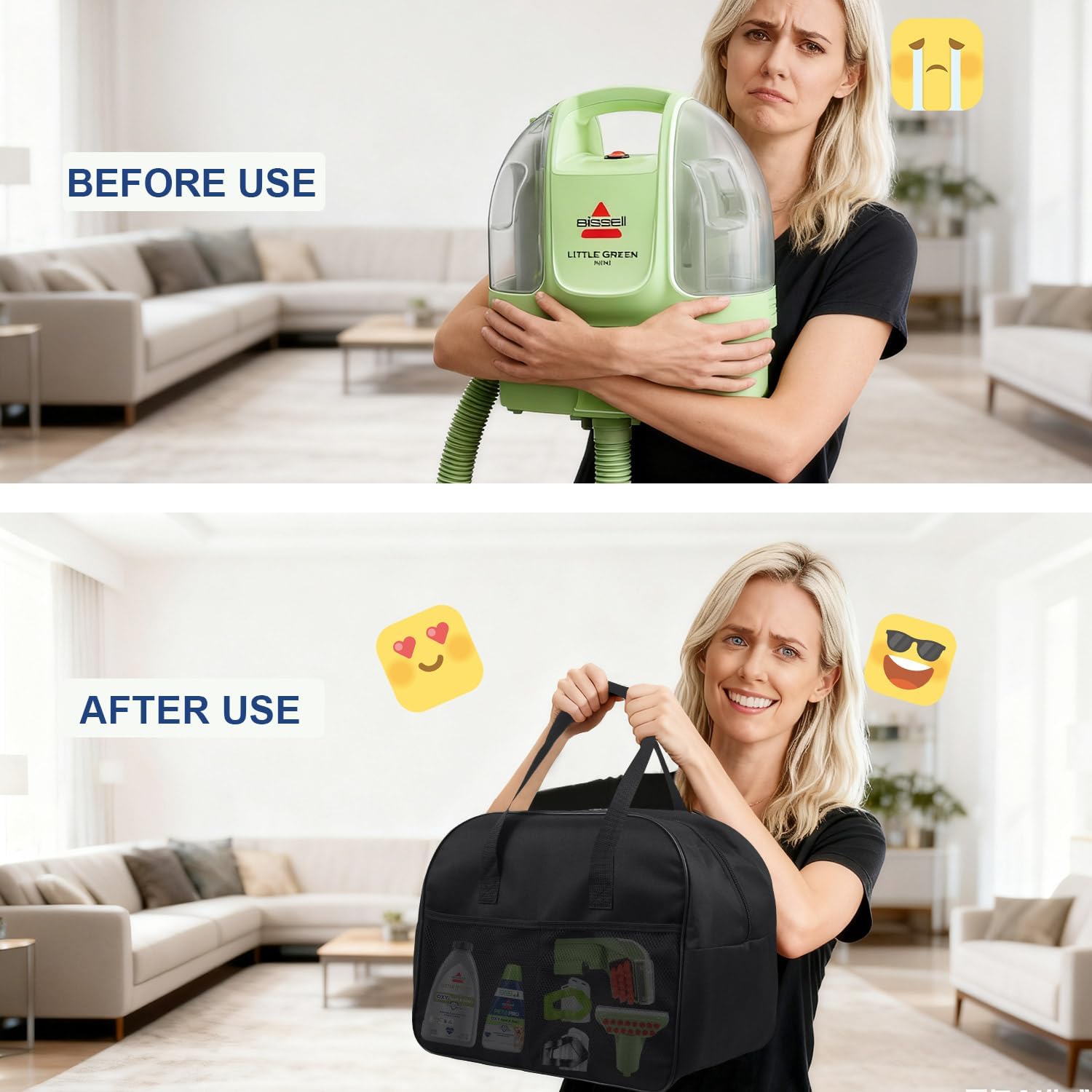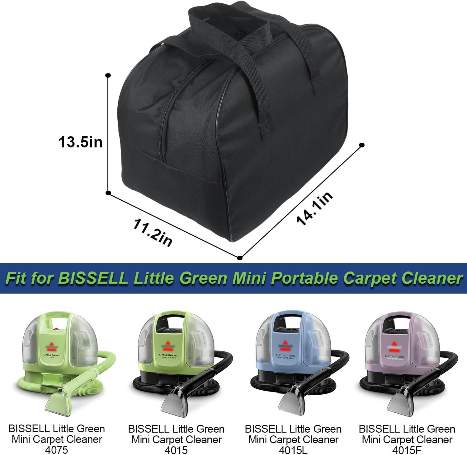 Compatibility: The carpet cleaner carrying bag fits for BISSELL Little Green Mini Portable Carpet and Upholstery Deep Cleaner (model: 4075/4015/4015F/4015L), and more. Please make sure the size fits before ordering.
