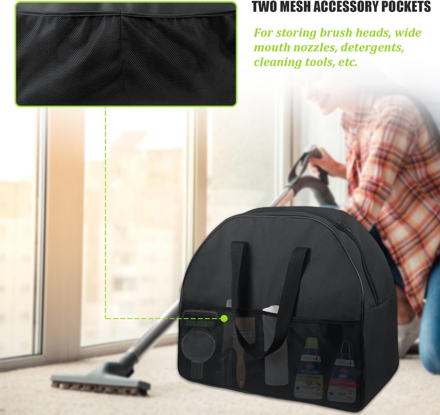 Accessory Organizer for Bissell Carpet Cleaner: Besides holding the cleaner, the the carpet cleaner tools organizer bag’s large interior space and front pockets store extra accessories, cleaning tools, and agents.