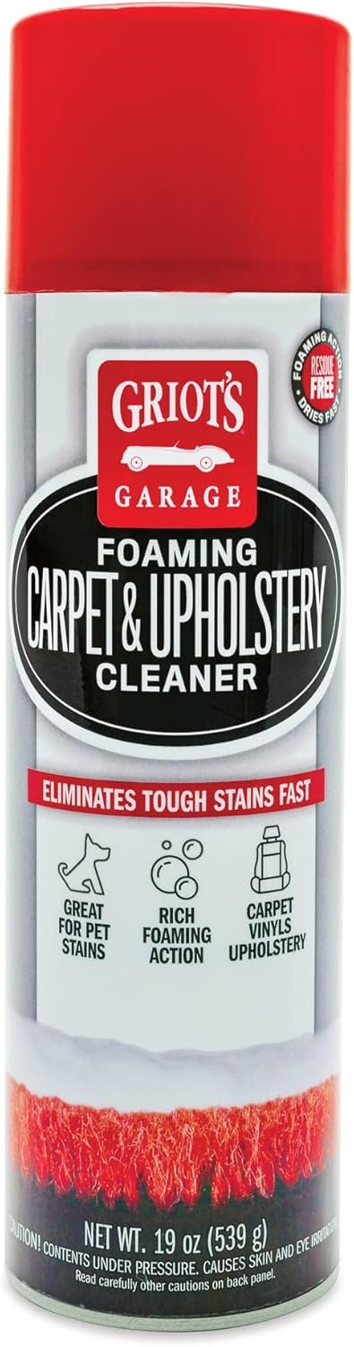 Tackle stubborn stains and freshen up your interior with this powerful Foaming Carpet and Upholstery Cleaner. Our high-foaming, professional-grade formula penetrates deep into fibers to lift oil and water-based stains without over saturating, making it a go-to car carpet cleaner for everyday messes and unexpected spills. A unique upside-down fan spray nozzle ensures even coverage across large areas, making stain cleanup faster and easier. This foaming carpet cleaner breaks down grime while drying quickly, so your carpets and upholstery look fresh without long wait times. Whether you’re dealing with muddy mats, spilled drinks, or pet messes, this fabric cleaner for car interior gets the job done. As it cleans, it also works as a car interior odor eliminator, using odor-fighting technology paired with a bright citrus fragrance to leave your vehicle smelling clean. Plus, it’s more than just an automotive upholstery cleaner; it’s safe on vinyl, textured plastic, and microfiber seats.