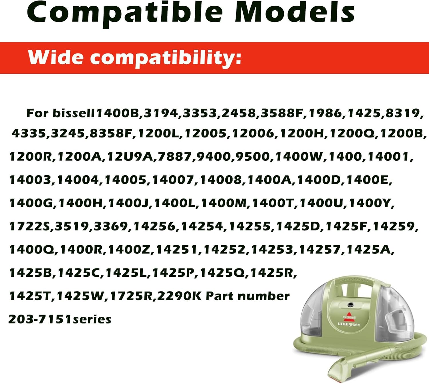 Compatible Model: Compatible for Bissell Little-Green Upright & Portable Carpet Cleaners for For 1400B, 1400W 1400 14001 14003 14004 14005 14007 14008 1400A 1400B 1400D 1400E 1400G 1400H 1400J 1400L 1400M 1400T, 1400U 1400Y 1722S,7887, 3194, 3353, 2458, 3588F, 1986,1425, 8319,4335, 3245, 8358F, 1200l,12005,12006,1200H, 1200Q, 1200B, 1200R, 1200 A,12U9A, 9400, 9500, 3519 3369 14256 14254 14255 1425D 1425F 14259 1400Q 1400R 1400Z 14251 14252 14253 14257 1425A 1425B 1425C 1425L 1425P 1425Q 1425R 1425T 1425W 1725R 2290K Part number 203-7151 series.